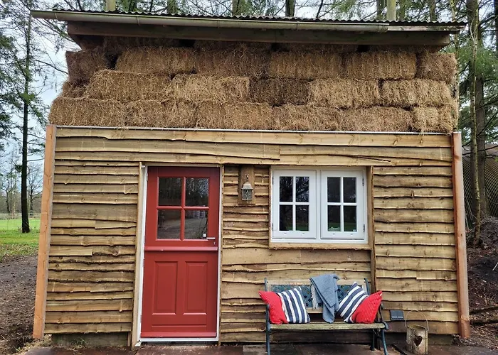 Gezellige Blokhut Op De Veluwe酒店距离卡纳伯尔堡3.9公里并且提供日光浴,阳光露台 和野餐区. 1间卧室配有沙发,咖啡机/煮茶器 和休息区.